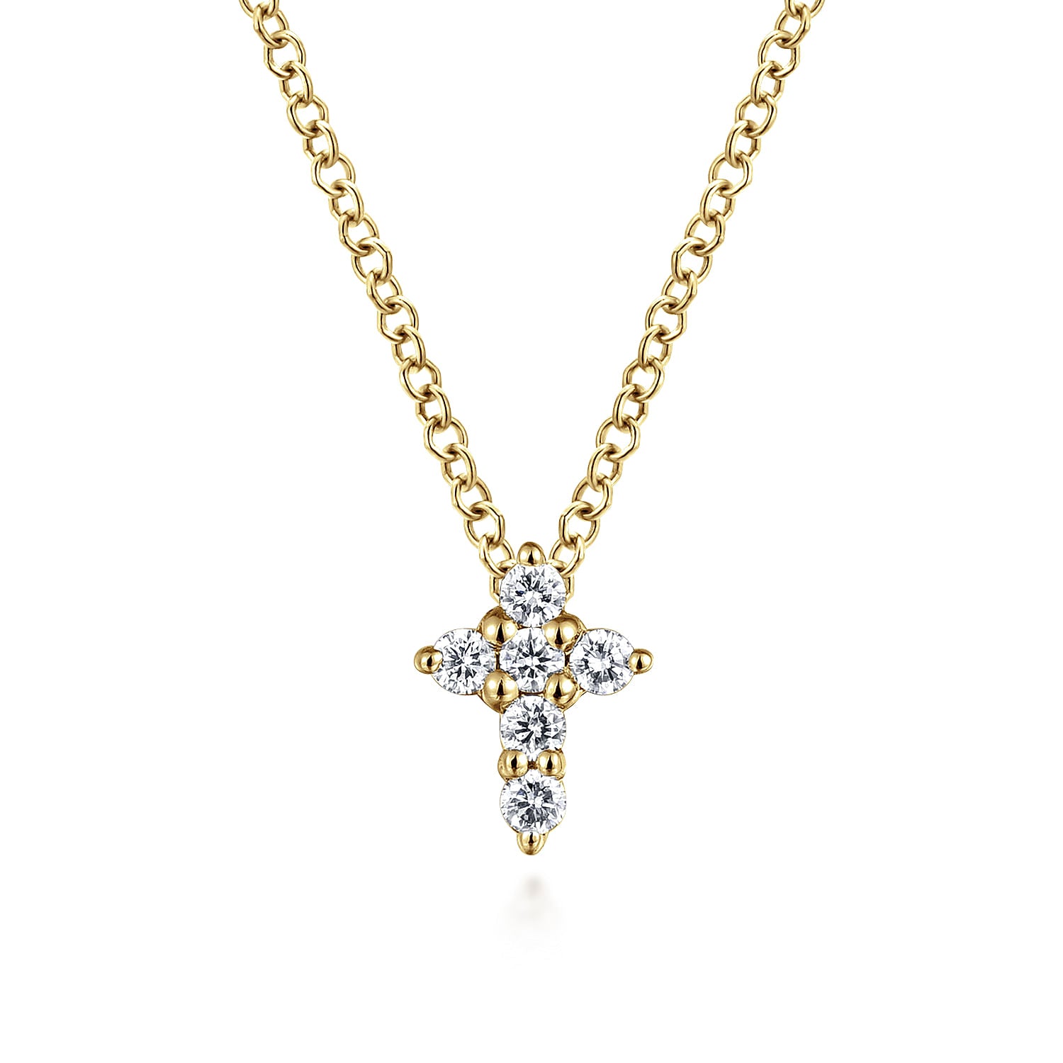 Lady's Yellow 14 Karat Open Link cross Necklace Length 15 With = 0.10Twt Round Brilliant G/H Si1 Diamonds