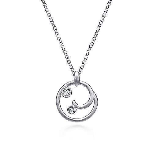 Lady's White Sterling Silver Matte' Fancy Link Necklace Length 17 With = 0.03Twt Round G Si1 Diamonds