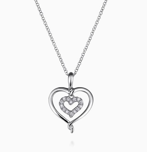 Lady's White Sterling Silver Open Link Necklace Length 18 With = 0.09Tw Round Brilliant G Si2 Diamonds