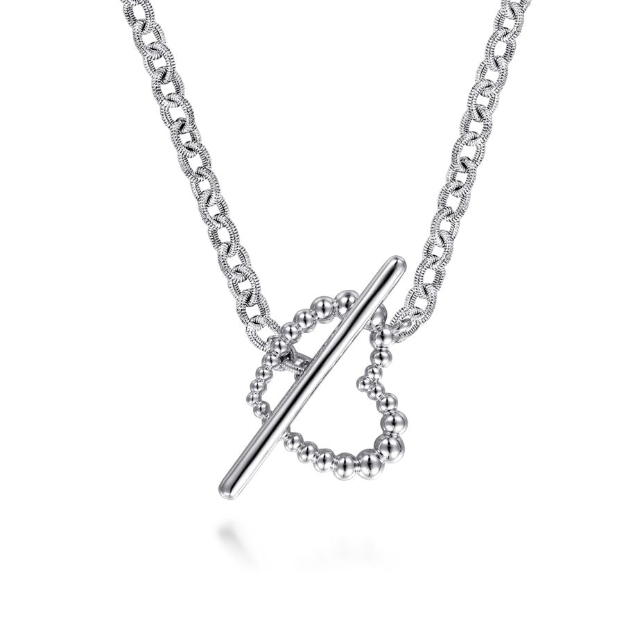 Lady's White Sterling Silver Florentine Fancy Link Necklace Length 17