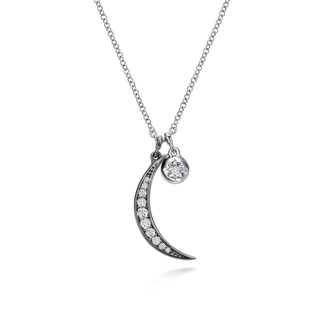 925 Sterling Silver Star and Moon Charm Necklace with White Sapphire