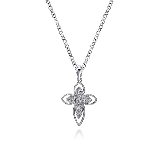 925 Sterling Silver Openwork Diamond Cross Necklace