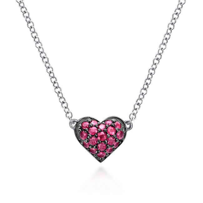 925 Sterling Silver Ruby Pavé Heart Pendant Necklace