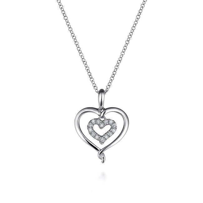925 Sterling Silver and Diamond Double Heart Pendant Necklace