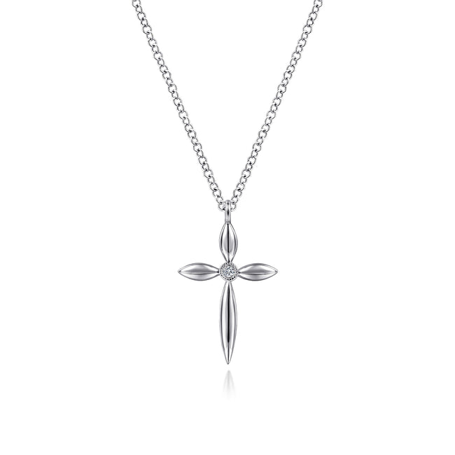 925 Sterling Silver Diamond Cross Pendant Necklace