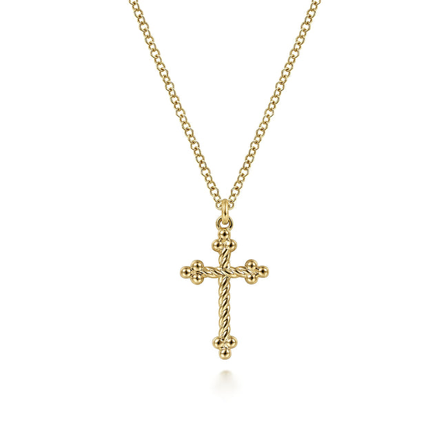 14K Yellow Gold Bujukan Twisted Rope Cross Pendant Necklace