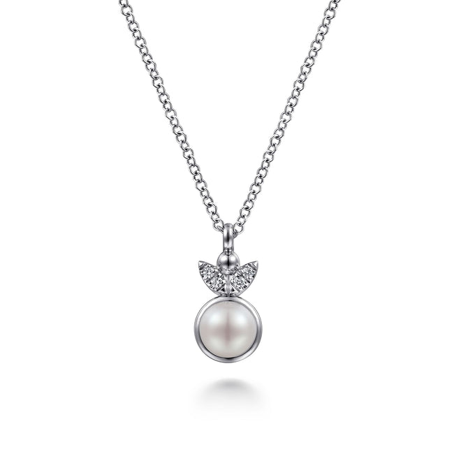 925 Sterling Silver Diamond Bujukan Pearl Pendant Necklace
