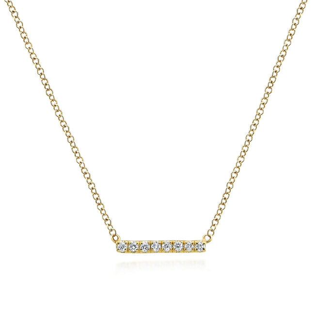 14K Yellow Gold Petite Pavé Diamond Bar Necklace
