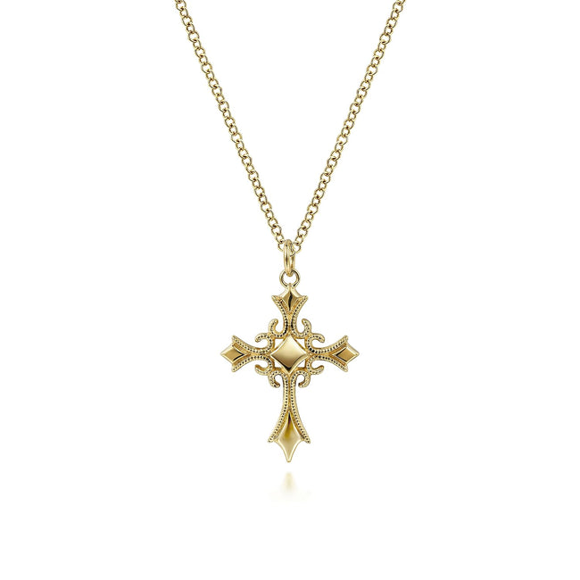 14K Yellow Gold Vintage Inspired Cross Pendant Necklace