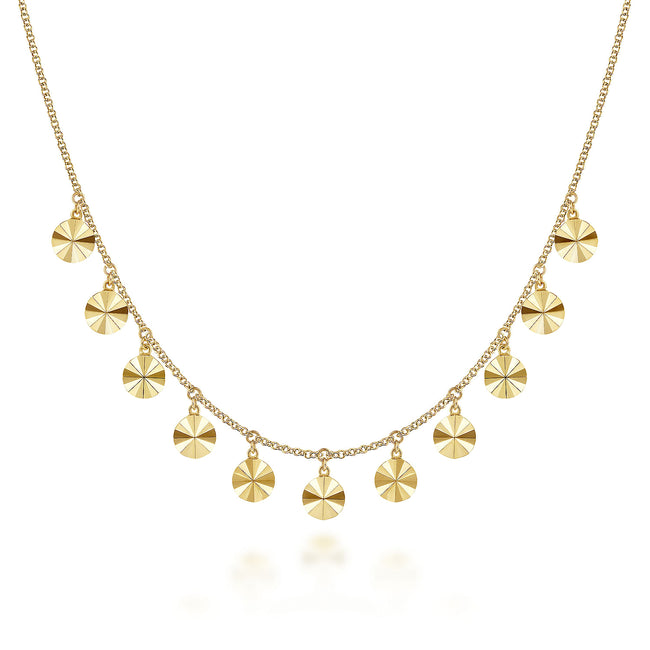 14K Yellow Gold Disc Drops Necklace