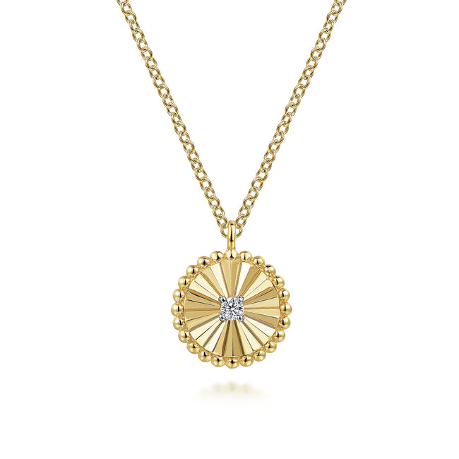 14K Yellow Gold Diamond Half Moon Diamond Cut Pendant Necklace