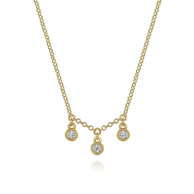 14K Yellow Gold Diamond Drop Pendant Necklace