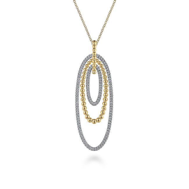 14K White-Yellow Gold Multi Oval Bujukan Diamond Pendant Necklace