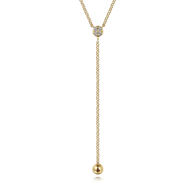 14K Yellow Gold Diamond Y-Knot Necklace with Hollow Gold Bead