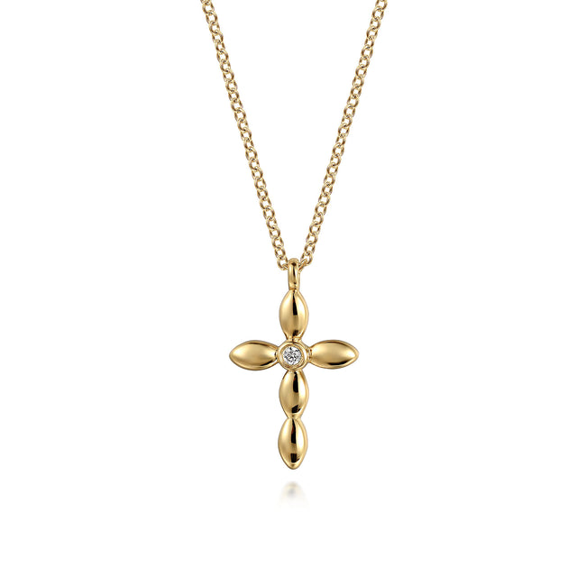 14K Yellow Gold Diamond Cross Necklace