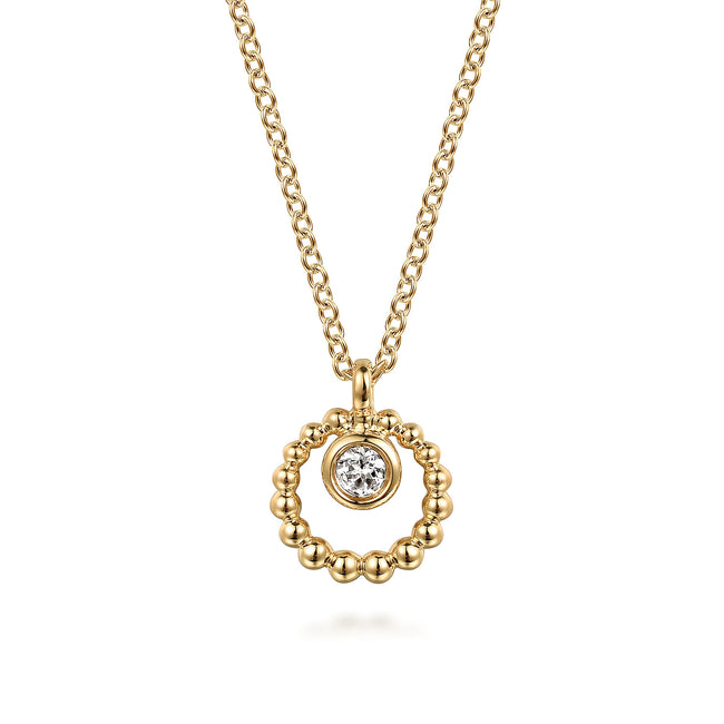 14K White Gold Diamond Circle Pendant Necklace