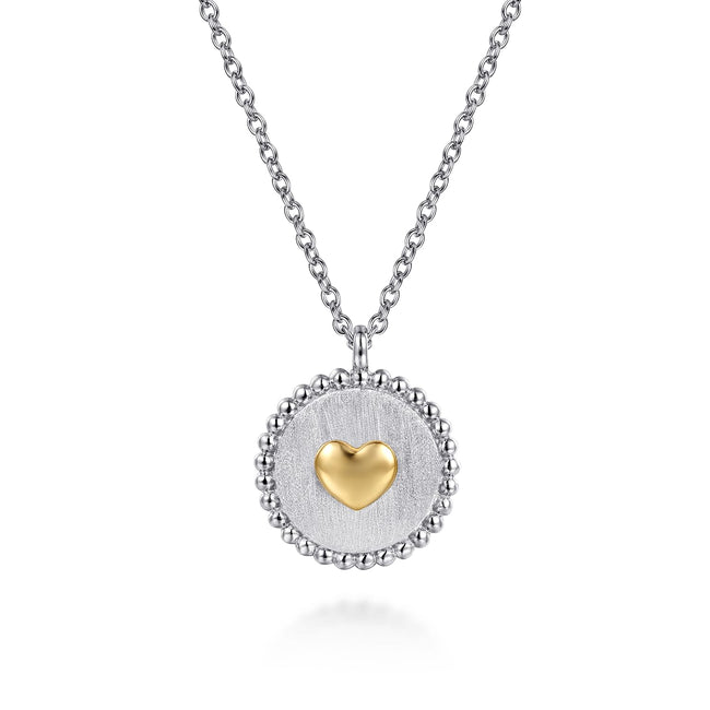 14K Yellow Gold & 925 Sterling Silver Bujukan Heart Medallion Pendant Necklace