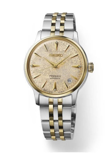 Presage Cocktail Time - White And Yellow Stainlesssteel Dress Watch with a light champagne dial with 4 diamonds