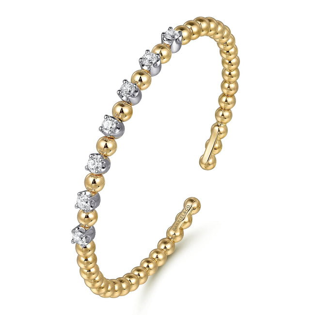 14K White and Yellow Gold Diamond Bujukan Beads Split Bangle