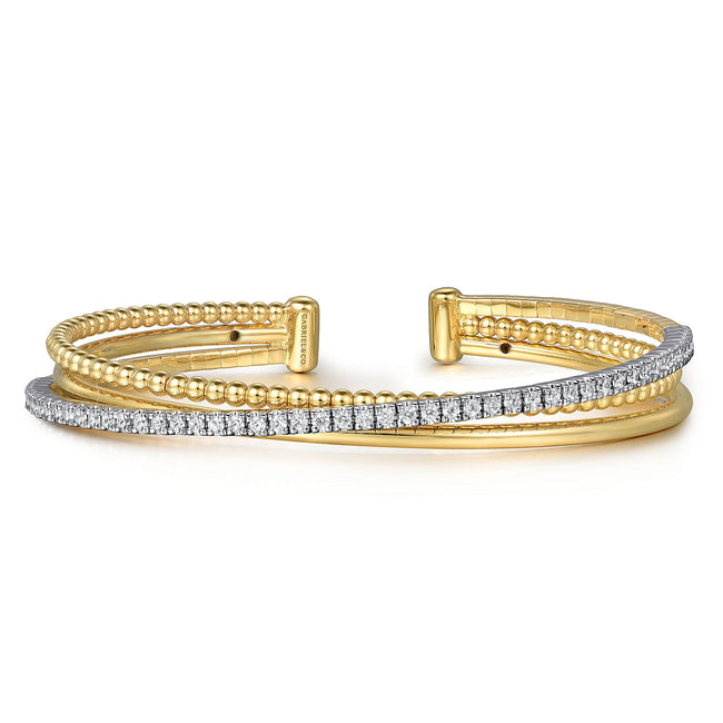 14K White and Yellow Gold Diamond Bujukan Criss Cross Bangle