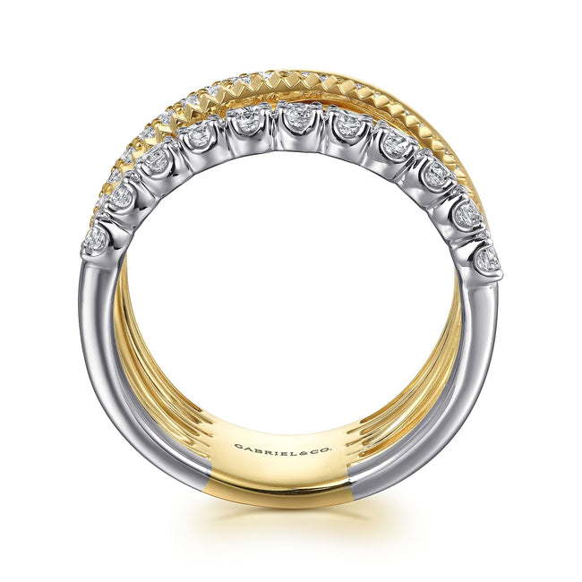 14K White and Yellow Gold Diamond Easy Stackable Ladies Ring