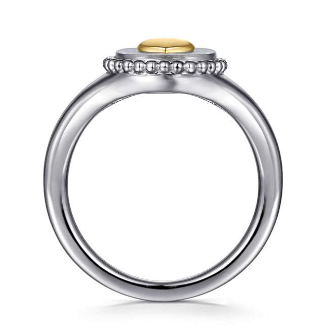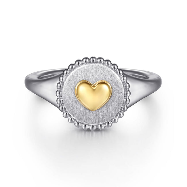 14K Yellow Gold & 925 Sterling Silver Bujukan Heart Medallion Ladies Ring