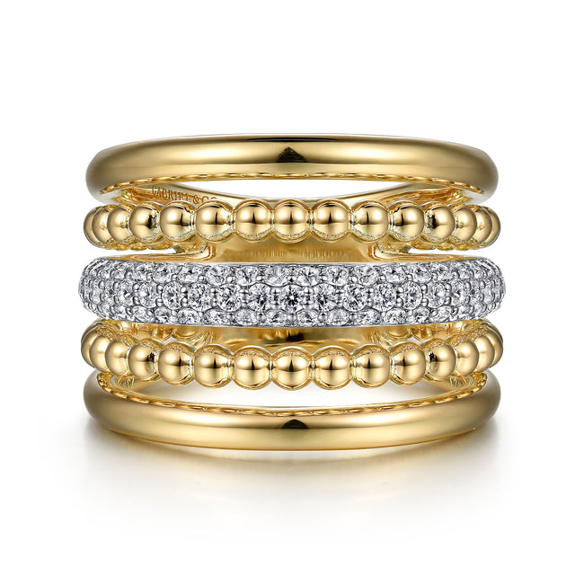 14K Yellow Gold Bujukan Diamond Ladies Easy Stackable Ring