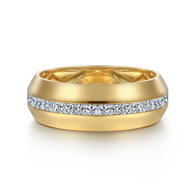 14K Yellow Gold Diamond Men's Wedding Ring in High Polish Finish