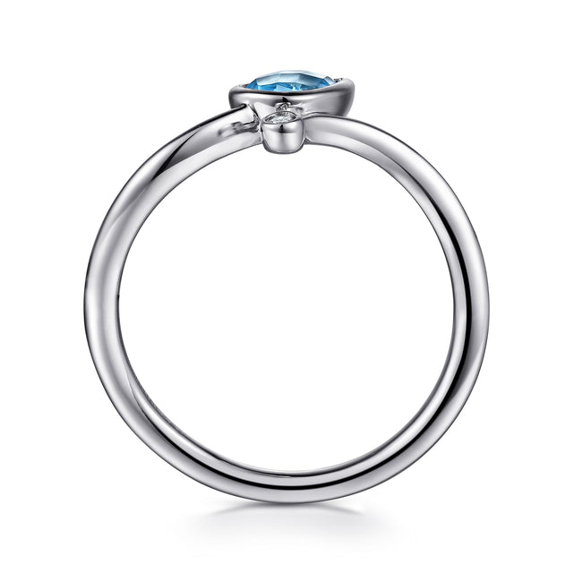 925 Sterling Silver Blue Topaz Teardrop Bypass Ring
