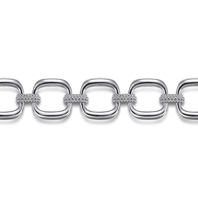 925 Sterling Silver Pavé Bujukan And Cushion Shape Link Chain Bracelet