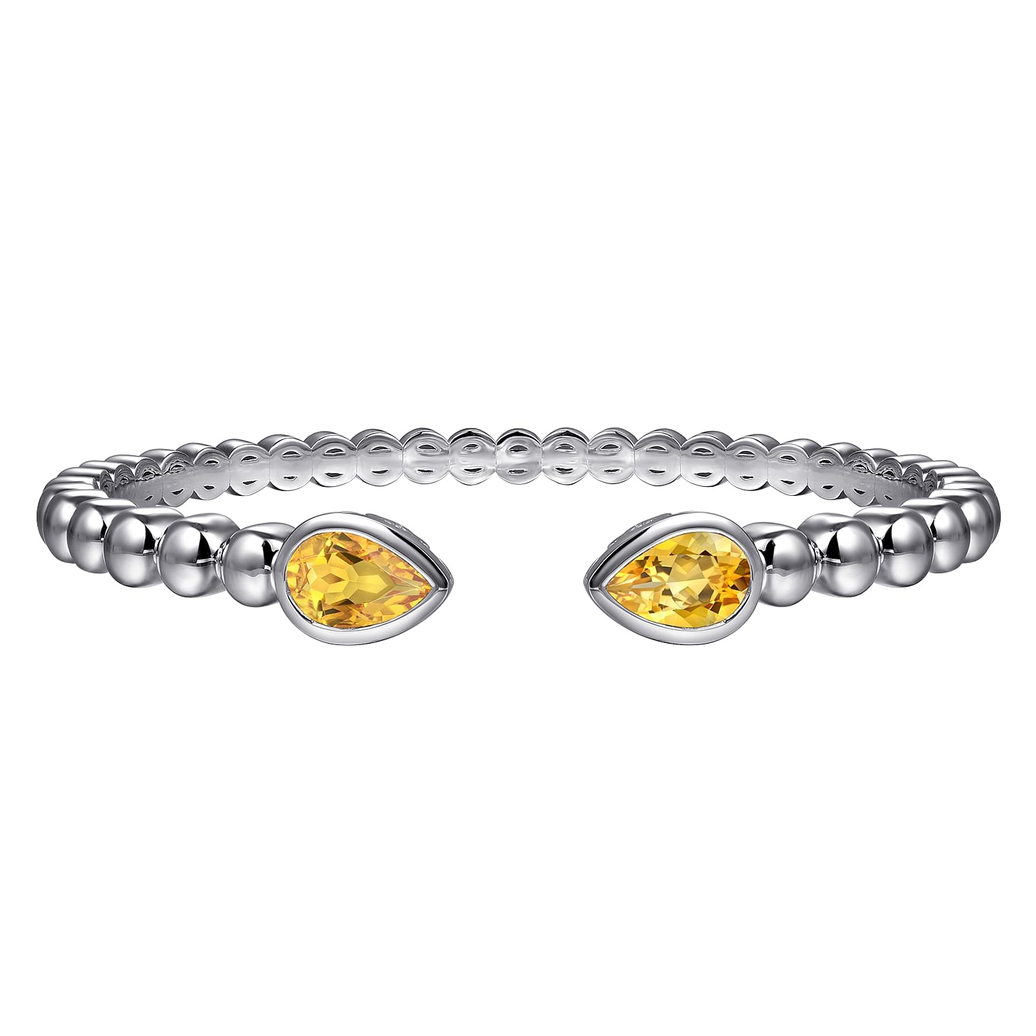 Lady's White Sterling Silver Bangle Bracelet Length 6.25 With 2 = 2.97Tw Pear Yellow Citrines