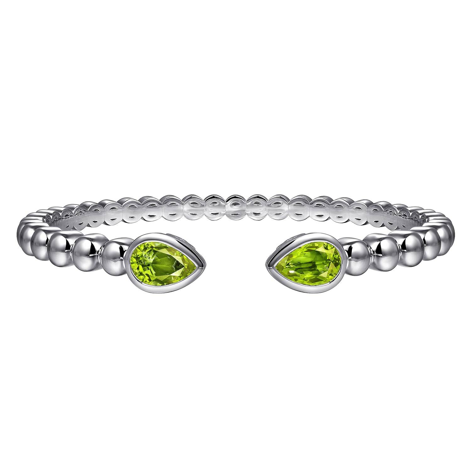 Lady's White Sterling Silver Bangle Bracelet Length 6.25 With 2 = 2.57Tw Pear Greenish Yellow Peridots