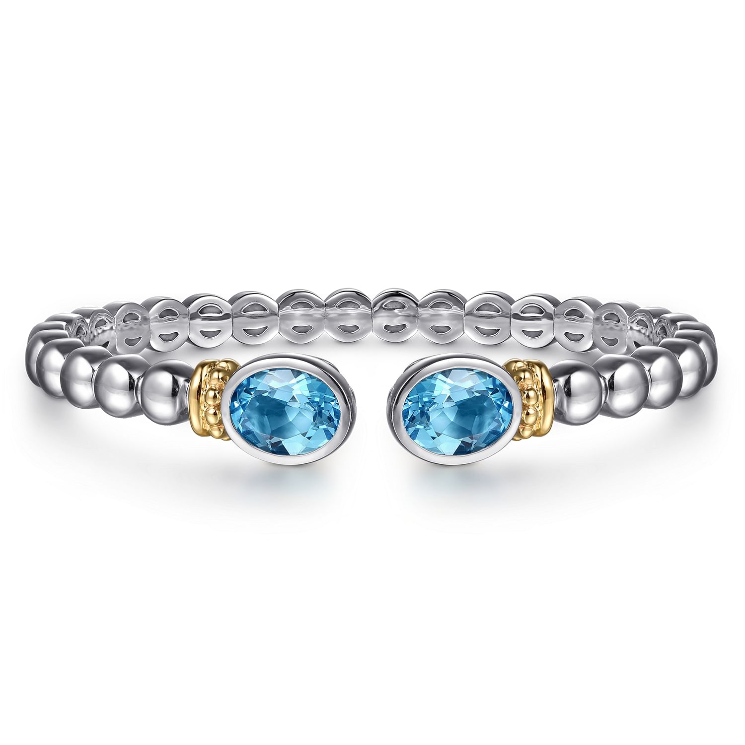 Lady's White And Yellow 14K Gold And Silver Bangle Bracelet Length 6.5 With 2 = 3.90Tw Oval Blue Topazs