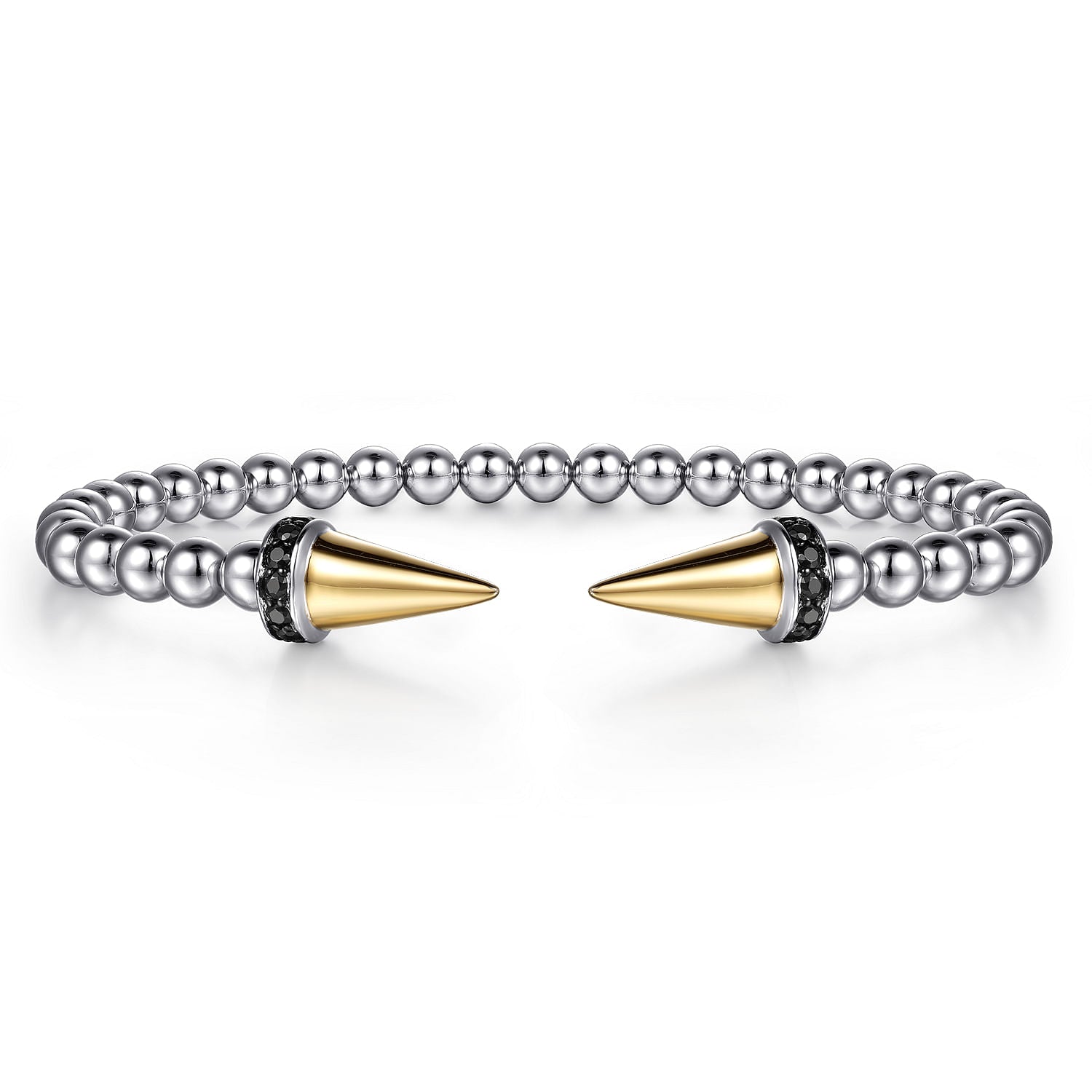 Lady's White And Yellow 14K Gold And Silver Bangle Bracelet With = 0.45Tw Round Black Spinels