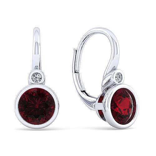 Lady's White Sterling Silver Drop Earrings With = 2.03Tw Round Reddish Orange Garnets And = 0.04Tw Round Brilliant G Si2 Diamonds