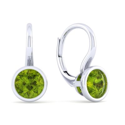 Lady's White Sterling Silver Drop Earrings With = 1.87Tw Round Greenish Yellow Peridots