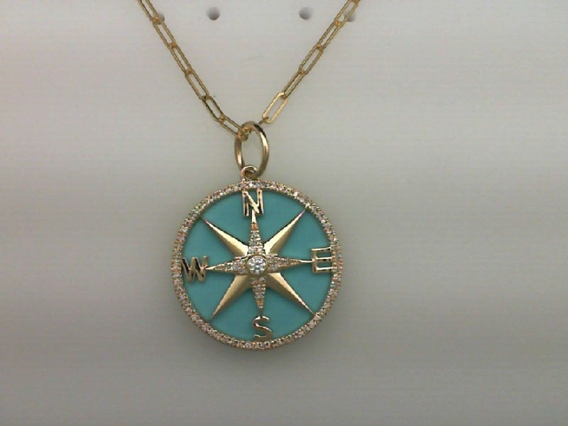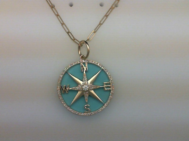 Lady's Yellow 14 Karat Drop Necklace Length 18 With = 0.19Tw Round Brilliant G Si1 Diamonds And = Round Blue Turquoises Style: Oval Link