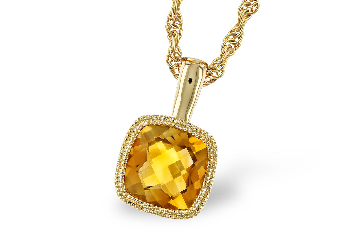 Lady's Yellow Gold 14 Karat Pendant Length 18 Inches With 0.75TW Cushion Shaped Yellow Citrine