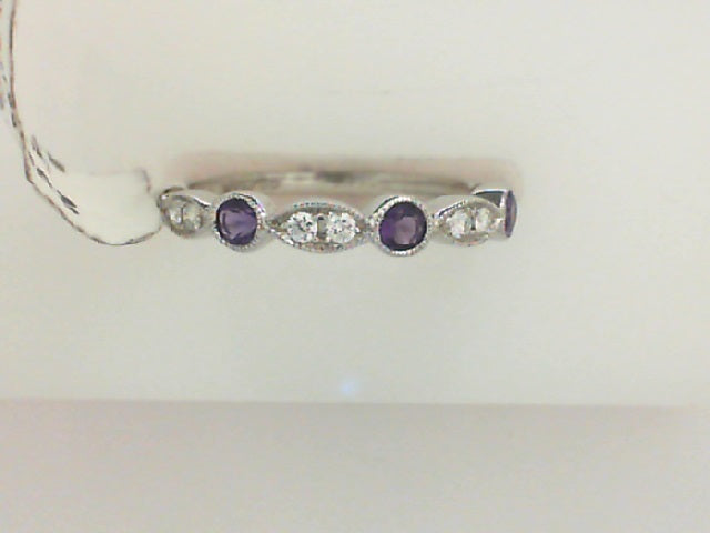 White 14 Karat Band Fashion Ring Size 6 With 0.10Tw Round Brilliant G Si1 Diamonds And 0.18Tw Round Purple Amethysts
