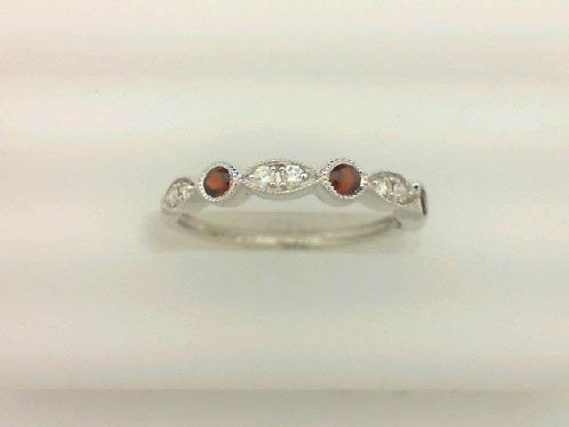 Lady's White 14 Karat Band Fashion Ring Size 6.5 With 0.10Tw Round Brilliant G Si1 Diamonds And 0.25Tw Round Slightly Purplish Red Garnets