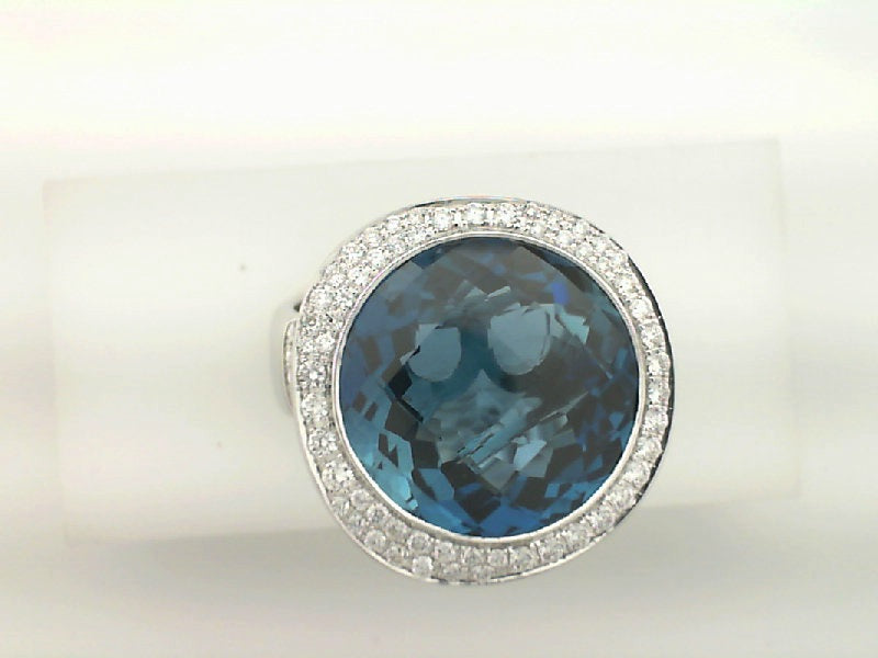 White 14 Karat Round Shaped Fashion Ring Size 7 With 0.77Tw Round Brilliant G Si1 Diamonds And 12.10Tw Round Blue Topazs