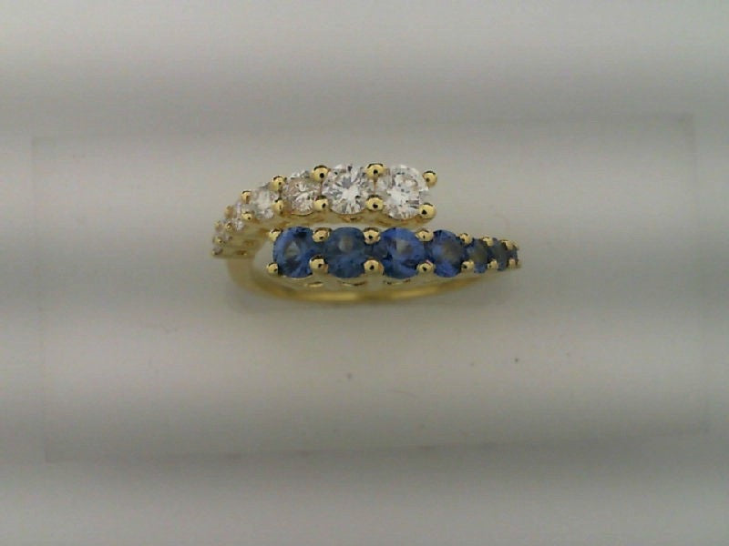 Yellow 18 Karat Cluster Fashion Ring Size 6.5 With = 0.49Tw Round Brilliant G Vs1 Diamonds And = 0.71Tw Round Blue Sapphires
