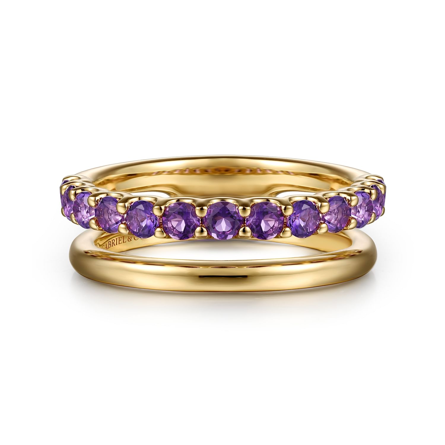 Lady's Yellow 14 Karat Band Fashion Ring Size 6.5 With = 0.72Tw Round Purple Amethysts