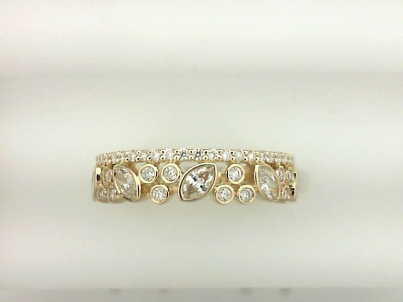 Yellow 14 Karat Half Anniversary Anniversary Ring Size 7 With = 0.12Tw Round Brilliant G/H Si1 Diamonds And = 0.11Tw Marquise Shape G/H Si1 Diamonds