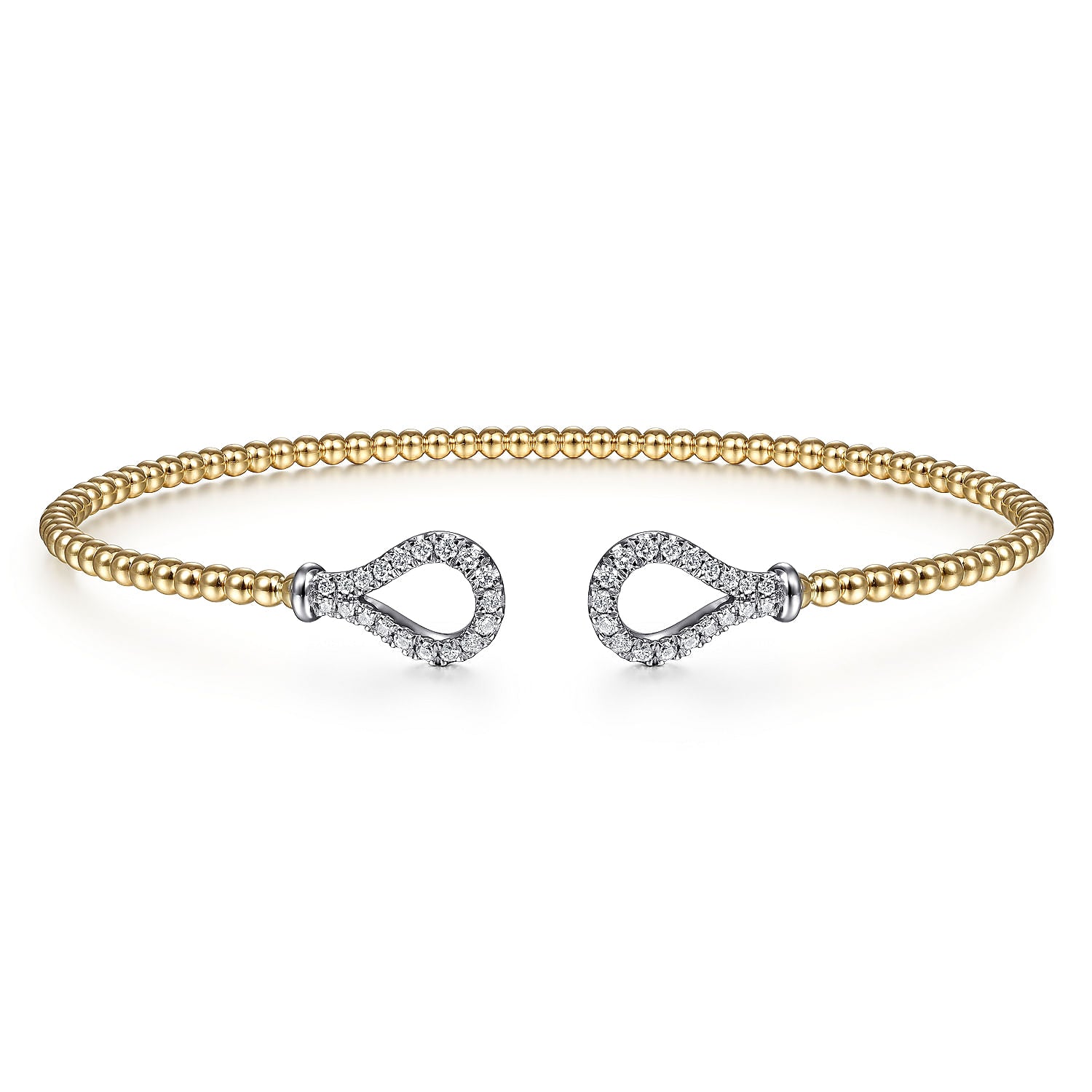 Lady's White And Yellow 14 Karat Bangle Bracelet Length 6.5 With = 0.26Tw Round G/H Si1 Diamonds