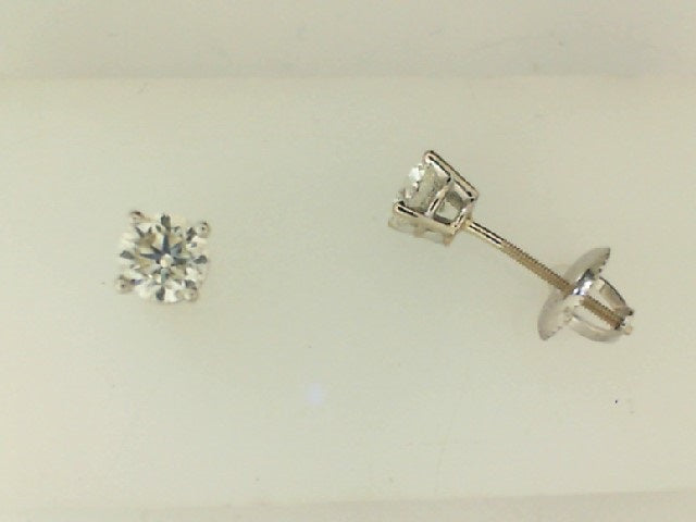 White 14 Karat Screw Back Stud Earrings With 2=3/4Ctw (.69-.80) Round Brilliant Diamonds