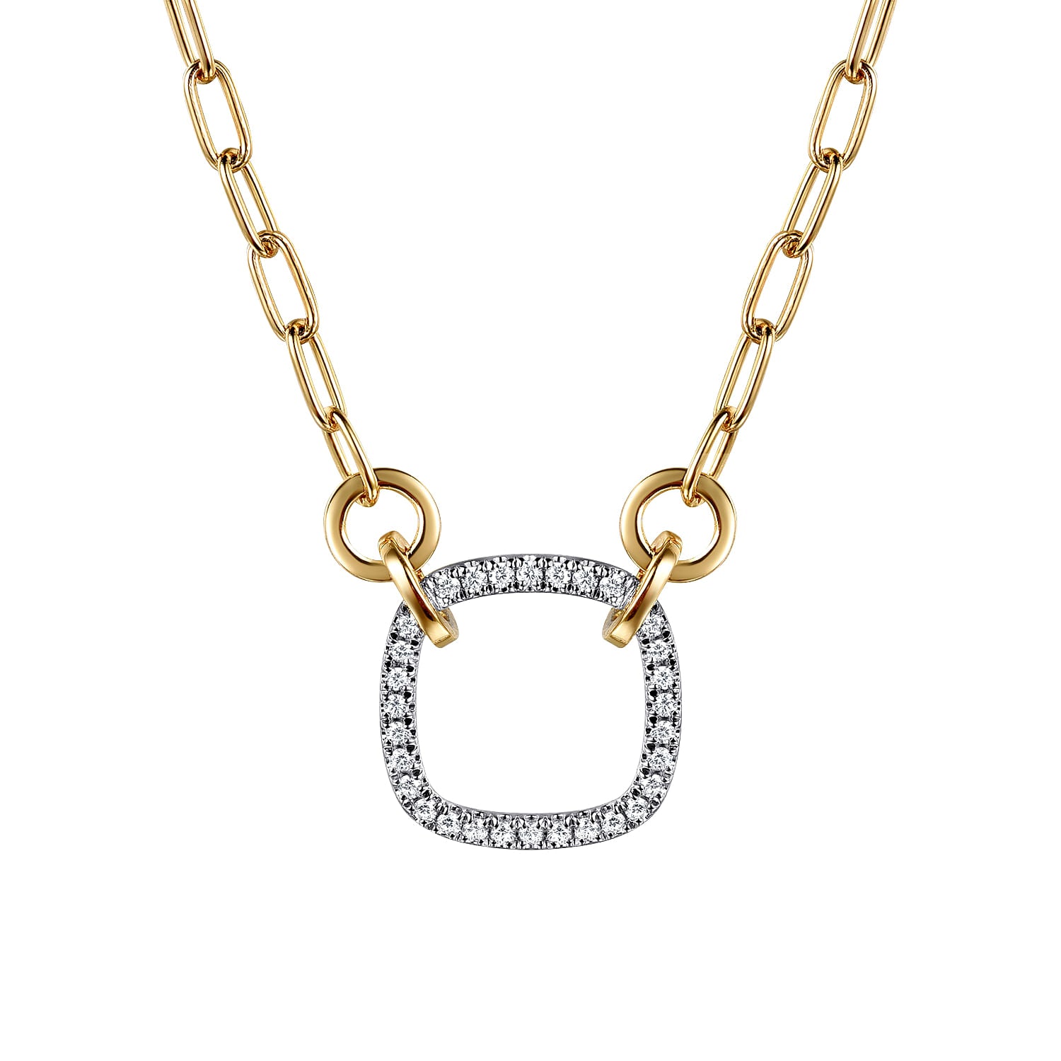 White And Yellow 14 Karat Paper Clip Necklace Length 17 With 0.23Tw Round Brilliant G/H Si1 Diamonds
