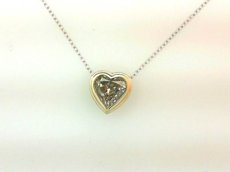 14K White And Yellow Gold Open Link Necklace Length 18 With = 1.24Tw Heart Shape Diamonds