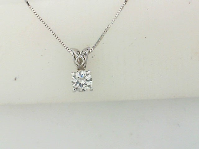 White 14 Karat Drop Pendant Length 18 With 0.40Tw (.36-.44) Round Brilliant Diamonds