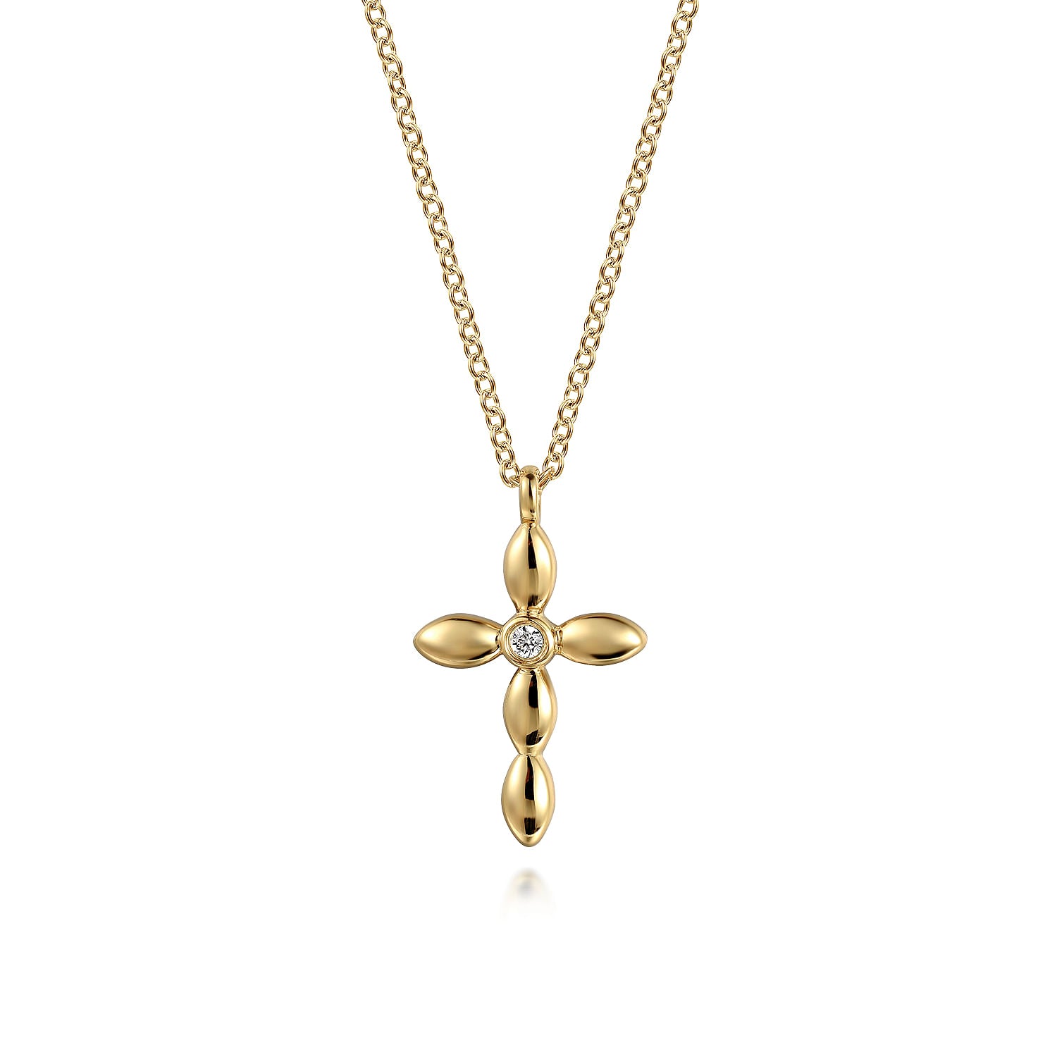 Lady's Yellow 14 Karat Cross Pendant Length 17.5 With = 0.02Tw Round Brilliant G/H Si1 Diamonds